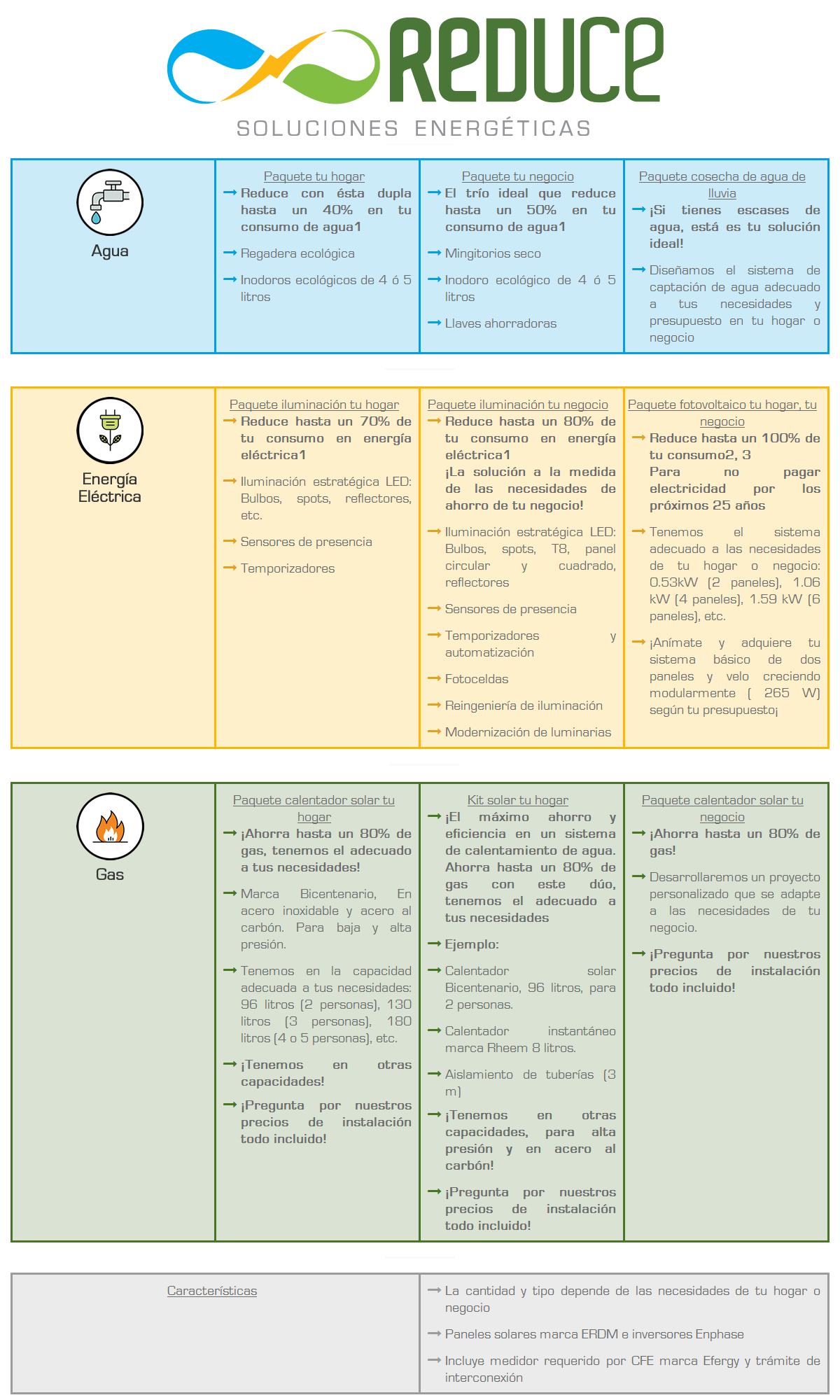 - Estas soluciones son especialmente diseñadas de acuerdo a tus necesidades buscando maximizar el ahorro en tu hogar o negocio.